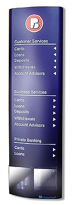 Special features units - information pylons, pending and exported console boards, including other products needed for the construction of the bank's branches.